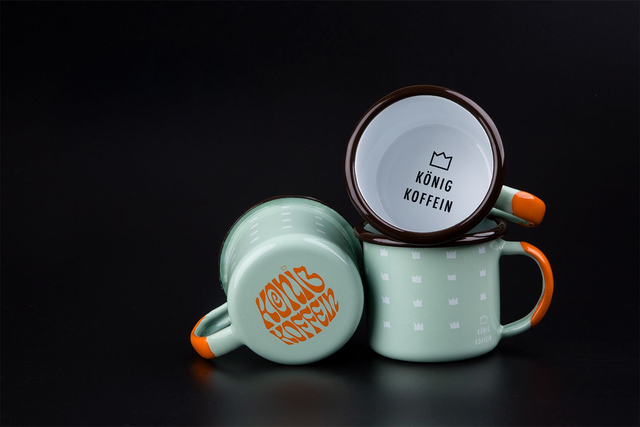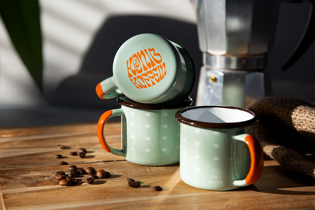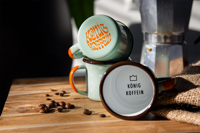 Die aktuellste und schon sechste Edition der König Koffein Emaille Tasse. In Europa gefertigt, bietet sie Trinkgenuss in höchster Qualität.